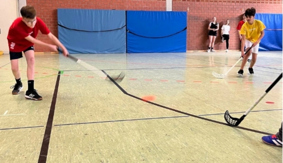 Fünftklässler des NGO zeigen ihr Können beim schulinternen Hockey-Turnier.