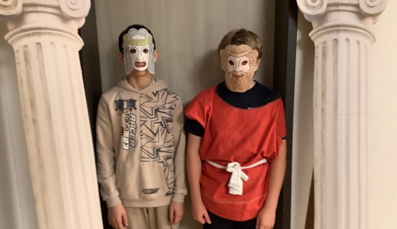 Die LateinschülerInnen des siebten Jahrgangs haben einen Auszug aus einer comoedia von Plautus übersetzt und sich im Anschluss mit dem Theater in Rom beschäftigt. Sie sind in die Kostüme der comoedi (SchauspielerInnen) geschlüpft und haben das Stück nachgespielt. Denn (Ja!) man kann durchaus latine loqui, also Latein sprechen.